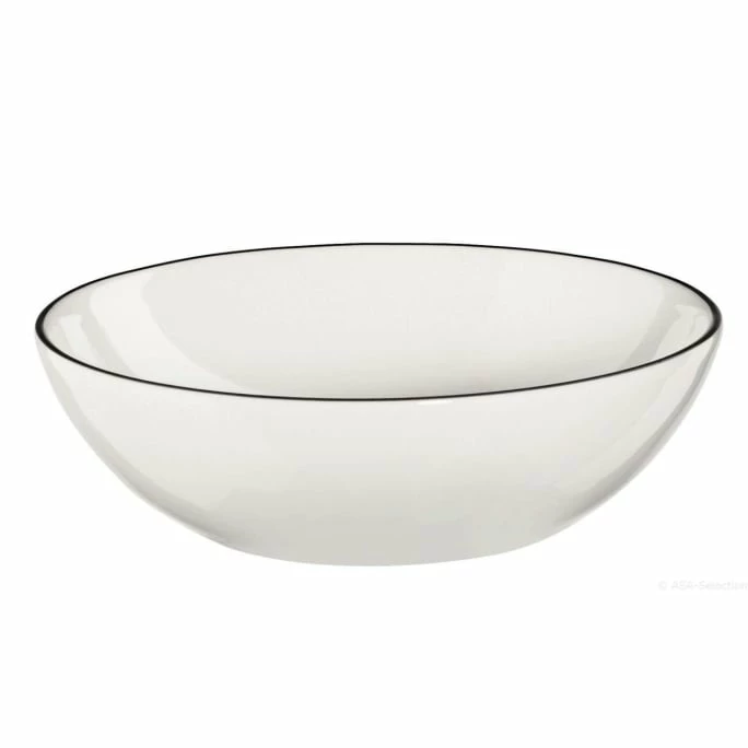 Mit der Schale ATABLE ligne noire aus dem Hause ASA holen Sie sich einen zeitlos schicken Klassiker auf den Tisch! Das feine, weiße Porzellan glänzt leicht und edel und am Rand erstrahlt eine zarte, schwarze Linie. Diese Kontur wird von Hand aufgetragen und macht so jede einzelne Schüssel ATABLE Ligne noire von ASA zu einem wahren Meisterstück. Selbstverständlich ist die Schale ATABLE Ligne noire von ASA spülmaschinenfest und mikrowellengeeignet. Die Serie ATABLE ligne noire lässt sich perfekt mit der klassischen ATABLE Serie kombinieren. Probieren Sie es gleich aus und veredeln Sie Ihre Tafel mit der Schale ATABLE ligne noire von ASA!