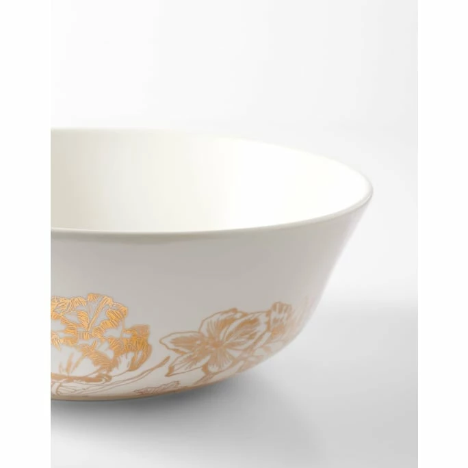 Schönes Geschirr ist das i-Tüpfelchen auf jeder gedeckten Tafel! Die Kollektion Masterpiece aus dem Hause Essenza begeistert mit aufregenden Formen, goldenen Details und einem romantischem Blumenmuster. Es sind verschiedene Teller, Tassen und Schalen verfügbar, die sich wunderbar untereinander oder mit schlichtem Geschirr kombinieren lassen. Die Kollektion ist komplett aus hochwertigem Porzellan gefertigt, aber durch die Goldverzierungen nicht spülmaschinen- und mikrowellengeeignet. Die große Schale beeindruckt durch die abgerundete Form und den grazilen Blumenprint. Bestellen Sie die schicken Schale aus der Masterpiece-Kollektion von Essenza in einer der verschiedenen Farbvariationen und erfreuen Sie sich bei jeder Mahlzeit an dem romantischem Design!