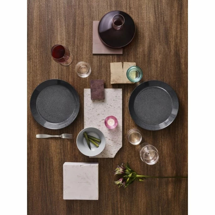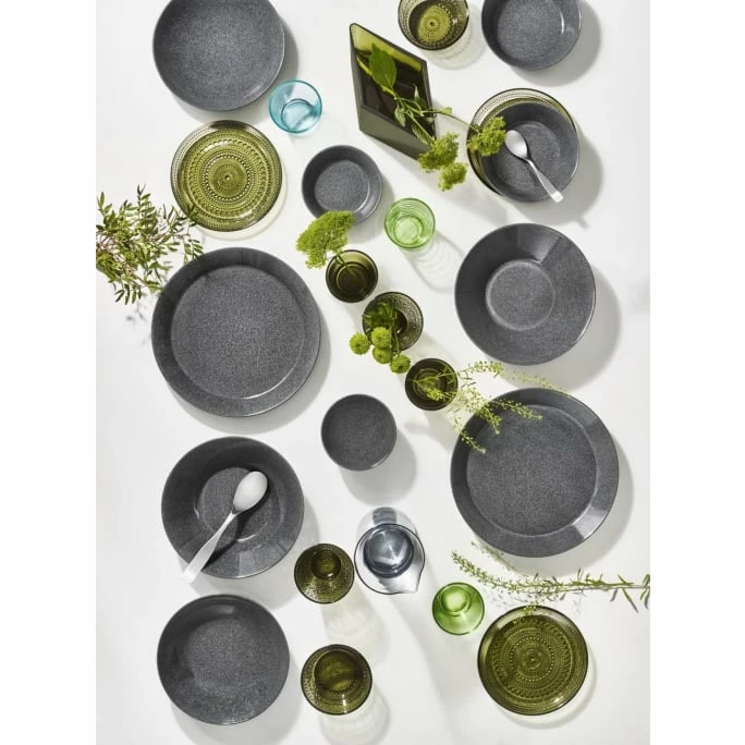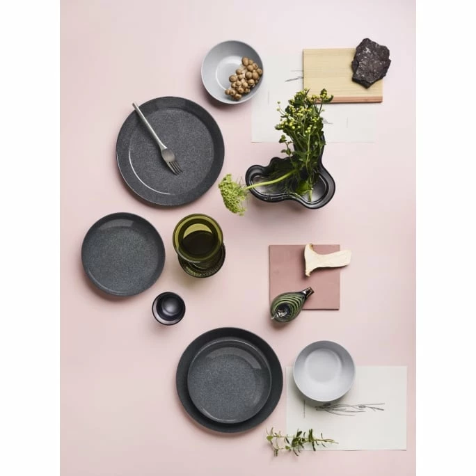 Bereits im Jahre 1952 entwarf der berühmte finnische Designer Kaj Franck das beliebte Geschirr Teema für iittala. Teema ist absolut vielseitig und bietet unzählige Kombinationsmöglichkeiten. Jedes Objekt steht für eine essentielle DesignDenkweise und entsteht aus drei grundlegenden Formen: dem Kreis, dem Quadrat und dem Rechteck. Die zweifarbige Glasur verleiht dieser Schale von Teema eine ganz neue Ausstrahlung. Die helleren Sprenkel, die verspielt über den dunkleren Grundfarbton tanzen, verleihen der Kollektion eine neue Ausdruckskraft. Die Glasur auf jedem Dessertschälchen ist einzigartig, weil die Sprenkel während des Herstellungsprozesses ganz eigene, zufällige Muster bilden. Jedes Teil aus der Teema Kollektion ist multifunktional und erfüllt perfekt die gestellten Anforderungen. iittalas Teema ist das Herz der iittala Kollektion und bildet die ideale Basis für Kombinationen mit anderen iittala Services, wie zum Beispiel Origo und Sarjaton. Wir empfehlen Ihnen, die Basisfarben weiß und schwarz mit den angebotenen Akzentfarben zu kombinieren. Die Teema Serie basiert auf dem Oven-to-table-Konzept, das Geschirr ist nicht nur gefrierfest, sondern auch für den Ofen, die Spülmaschine und die Mikrowelle geeignet. Teema hieß früher übrigens Kilta und ist ein Paradebeispiel dafür, dass zeitloses Design dauerhaft von Bedeutung ist. Das finnische Unternehmen iittala setzt auf ein Einrichtungsdesign, das ein Leben lang Bestand hat. In Zusammenarbeit mit berühmten Designern entwickelt iittala zeitlose Designartikel, die nie aus der Mode kommen. Qualität, Ästhetik und Funktionalität werden bei iittala groß geschrieben. Lassen Sie Ihren Ideen freien Lauf und genießen Sie Ihre Snacks oder Desserts aus der edlen Schale Teema aus dem Hause iittala.