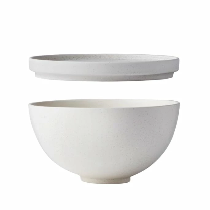 Mit der Setomono Geschirr-Serie von Kristina Dam Studio erhalten Sie handgemachtes Feinsteinzeug, das von traditioneller japanischer Keramik inspiriert wurde. Das 2-teilige Schalen-Set L besteht aus einer 1,2 Liter fassenden Schüssel und einem Teller, der gleichzeitig als Deckel verwendet werden kann. Die Setomono Geschirr-Kollektion ist farbig glasiert, zweifach gebrannt und spülmaschinen- und mikrowellengeeignet. Egal ob im Alltag oder auf der festlich dekorierten Tafel: Das Kristina Dam Studio Schalen-Set lässt sich hervorragend kombinieren und passt durch seinen schlichten und stilvollen Look zu wirklich jedem Service und jeder Tischdekoration. Aufgrund der matten Glasur ist die Setomono Geschirr-Serie anfällig für Kratzer und Besteckspuren, die im Laufe der Zeit auf der Oberfläche sichtbar werden. Um diese Spuren zu entfernen oder zu reduzieren, können Sie die Schalen einfach mit Vienna Kreide, eine natürliche Reinigungsessenz auf Calciumbasis, reinigen. Lassen Sie sich von dem tollen, asiatischen Design und den vielseitigen Einsatzmöglichkeiten des 2er Setomono Schalen-Sets L von Kristina Dam Studio begeistern und machen sich oder einem lieben Menschen eine besonders schöne und praktische Freude!