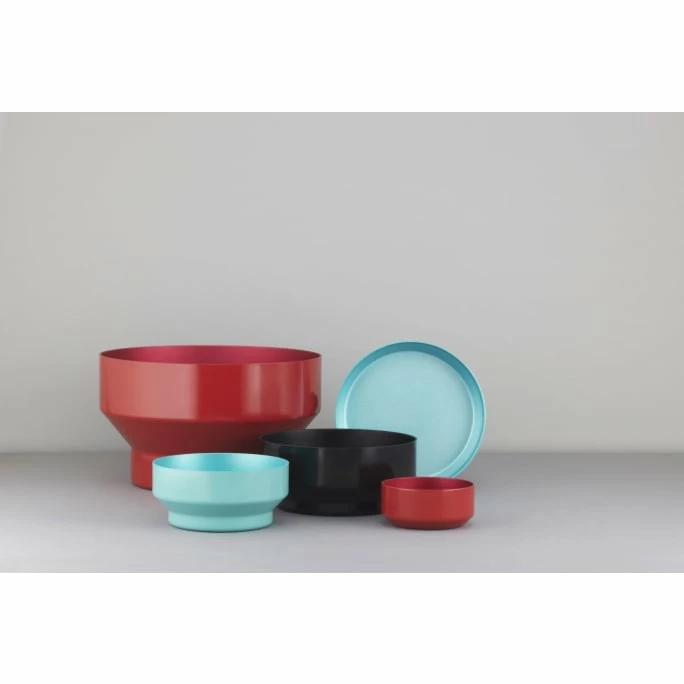 Wie ein kleiner, futuristischer Farbakzent aus einer anderen Welt kreiert die Normann Copenhagen Meta Schüssel raffinierten Glamour in Ihrer Einrichtung. Die Normann Copenhagen Meta Servierschale besteht aus Aluminium mit glänzender Außenseite und einer glitzernden Innenseite. Der Kontrast zwischen Außenseite und Innenseite ergibt eine abwechslungsreiche Optik innerhalb einer Farbnuance. Ein raffiniertes Detail, das sich diskret vom klaren Design abhebt. Die geometrische, kapselartige Form, in Verbindung mit den verlockenden Metallicfarben aus der Welt der Mode, verleiht Meta einen träumerischen, futuristischen Look. Die Meta Serie besteht aus fünf Schüsseln verschiedener Größen und Höhen, wodurch Meta ganz flexibel eingesetzt werden kann. Die größte der Meta Schalen von Normann Copenhagen ist ideal für Obst oder Salate. Die kleineren Meta Schalen eignen sich für allerlei Kleinigkeiten, von Süßigkeiten bis hin zu funktionalen Utensilien wie Büroklammern. Die flache Schale ist zum Beispiel optimal für die Aufbewahrung von Schmuck oder aber das Servieren von Antipasti wie Oliven.