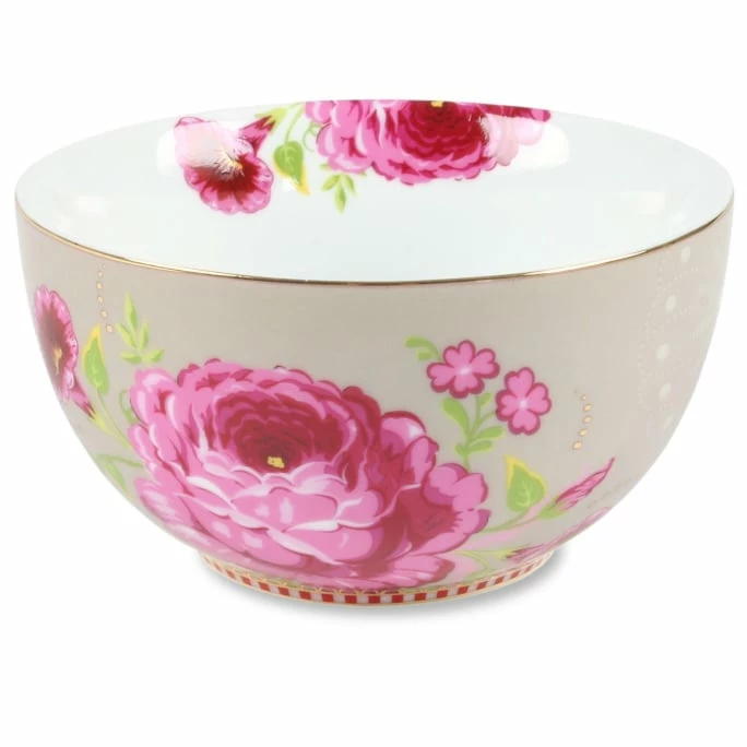 Romantik pur – Das wunderschöne Blumendekor und eine farblich harmonisch abgestimmte gemusterte Borte zieren das Porzellanservice Big Flower von Pip Studio. Das schöne Motiv kombiniert mit wunderschönen Farben machen die Geschirr-Serie von Pip Studio zu einem wahren Kunstwerk. Mit dem Service Big Flower schaffen Sie sich zu jeder Tageszeit ein anmutendes und edles Ambiente auf den Tisch. In dieser wunderschönen Schüssel können Sie Nachspeisen, Müsli oder auch Snacks besonders präsentieren. Das Schmuckstück sollte auf keiner fein gedeckten Tafel fehlen. Auch wunderbar kombinierbar mit anderen Porzellan-Serien von Pip Studio. Mixen Sie – Sie werden begeistert sein. Das Porzellan von Pip Studio steht für eine ausgezeichnete Verarbeitung und topaktuelle Designs – für jedes Zuhause.