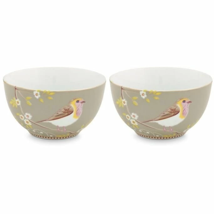 EARLY BIRD ist wohl die beliebteste und auch bekannteste Serie von Pip Studio – der süße kleine Vogel, in sich ruhend auf einen blühenden Kirschblütenzweig und der typische Goldrand mit den rot-weißen Kästchen verzaubern nicht nur die Romantiker. Mit diesen beiden Schalen aus der EARLY BIRD Kollektion im dekorativen Geschenkkarton können Sie ihr bestehendes Pip Studio Geschirr ergänzen, einem lieben Menschen mit einer tollen Geschenk-Idee eine riesen Freude bereiten oder Sie starten selbst mit der Sammlung dieser bezaubernd schönen Geschirrserie aus Porzellan. EARLY BIRD ist in sich kombiniert mit den Tellern, Tassen, Schüsseln, Etagere, Teekanne, Zuckerdose und vielen mehr ein traumhaft schöner Anblick – aber auch im Mix mit den anderen Serien von Pip Studio ergeben sich wunderschöne Tischarrangements. Die holländische Marke Pip Studio verbindet hochwertige Materialien mit einzigartigen und liebevoll gestalteten Designs. Unter dem Motto “Happy products for happy people” entstehen Kollektionen, die außergewöhnlich detailreich sind und mit frischen Farben Fröhlichkeit verbreiten. Lassen Sie sich verzaubern oder verschenken Sie pure Freude mit diesem Geschenk-Set aus zwei EARLY BIRD Schälchen von Pip Studio.