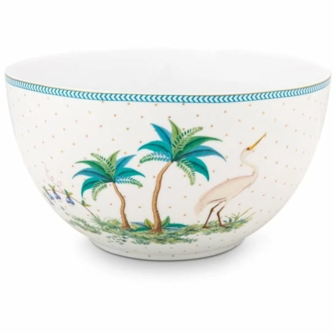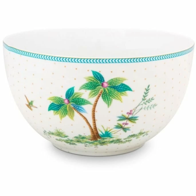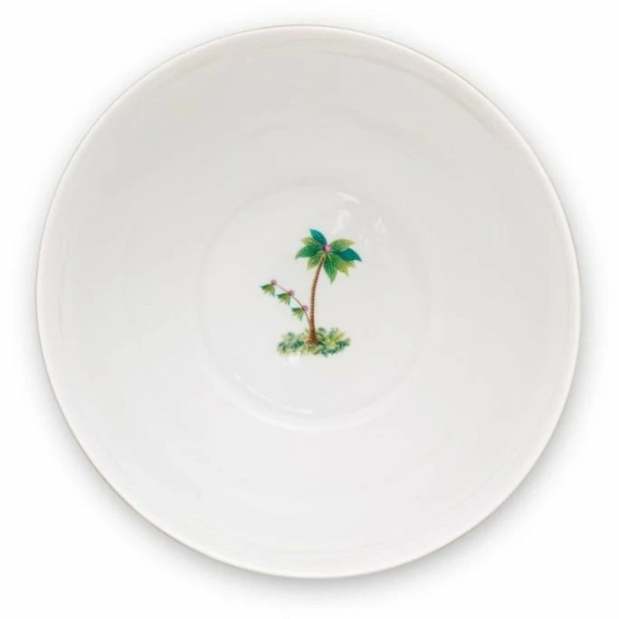 Fantasievolle Blumen, Sonnenschirme, Palmen, weiße Kraniche und Schwäne: Mit der Jolie Geschirrserie von Pip Studio schaffen Sie eine einzigartige, exotisch-asiatisch angehauchte Tischdekoration, die ganz bestimmt alle Blicke auf sich zieht. Aus feinstem Porzellan gefertigt, begeistert die Jolie Flowers Schale durch ein exotisches Dessin mit Kolibri, Palmen, Fantasieblüten und weißem Kranich. Die eleganten Pünktchen und der edle Goldrand runden das optische Gesamtbild dabei perfekt ab. Ob als Dessert- oder Müslischale, mit Salat, Bonbons, Plätzchen oder Salzbrezeln gefüllt: Mit der Pip Studio Jolie Flowers Porzellschüssel zeigen Sie Ihre individuelle Seite. Die unterschiedlichen Dekore der Jolie Porzellankollektion sind übrigens hervorragend miteinander kombinierbar. Lassen Sie sich von dem wundervollen und ausgefallenen Dessin begeistern und verzaubern Ihre Gäste mit der Jolie Geschirrserie von Pip Studio!