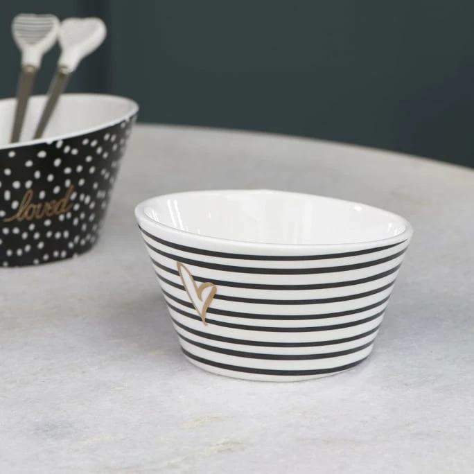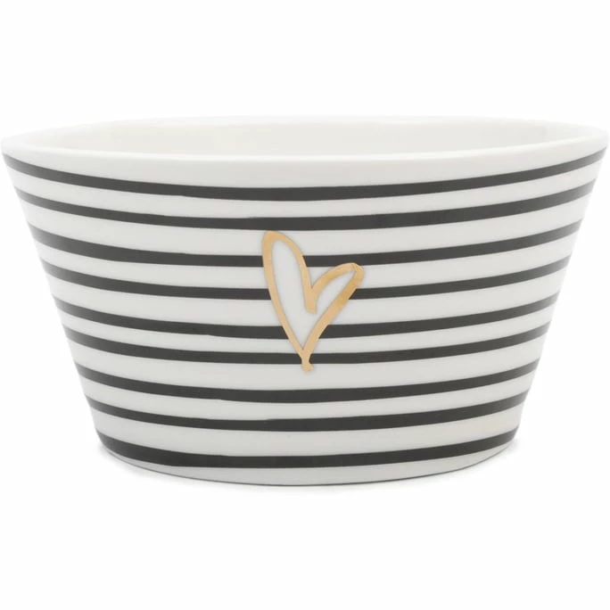 Wer das Dots & Stripes Geschirr von Rivièra Maison kennt, weiß, dass es sich um eine Geschirrserie mit einem exklusiven Look handelt. Aus spülmaschinenfestem Porzellan gefertigt, zieren Streifen, Punkte, Herzen und kleine Schriftzüge das trendige Geschirr. Wenn Sie also eine individuelle Tischdekoration suchen oder einfach ein paar besondere Akzente setzen wollen, dann sind Sie mit der Dots & Stripes Heart Schüssel bestens ausgestattet. Vielseitig einsetzbar, kann die Schale zudem hervorragend mit schlicht weißem Geschirr kombiniert werden. Lassen Sie sich von dem tollen Look begeistern und bringen mit dem Dots & Stripes Heart Schüssel von Rivièra Maison einen modernen Touch auf Ihren Esstisch!