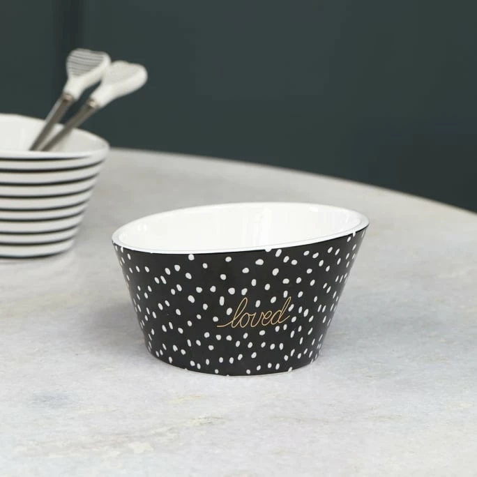 Wer das Dots & Stripes Geschirr von Rivièra Maison kennt, weiß, dass es sich um eine Geschirrserie mit einem exklusiven Look handelt. Aus spülmaschinenfestem Porzellan gefertigt, zieren Streifen, Punkte, Herzen und kleine Schriftzüge das trendige Geschirr. Wenn Sie also eine individuelle Tischdekoration suchen oder einfach ein paar besondere Akzente setzen wollen, dann sind Sie mit der Dots & Stripes Loved Schüssel bestens ausgestattet. Vielseitig einsetzbar, kann die Schale zudem hervorragend mit schlicht weißem Geschirr kombiniert werden. Lassen Sie sich von dem tollen Look begeistern und bringen mit dem Dots & Stripes Loved Schüssel von Rivièra Maison einen modernen Touch auf Ihren Esstisch!