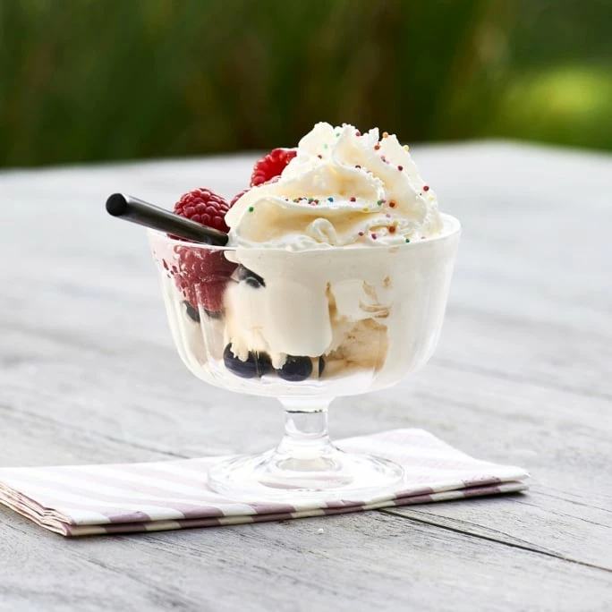 Elegant, robust und ideal für den Außenbereich! Aus transparentem Kunststoff gefertigt, ist der Poolside Eisbecher von Rivièra Maison kaum von einer Glasschale zu unterschieden. Die elegante Oberflächenstruktur und der kleine Fuß runden den klassischen Look von Poolseide dabei perfekt ab. Egal ob Eis, Pudding, Quarkspeisen oder Obstsalat: Die Rivièra Maison Eisschale ist vielseitig einsetzbar und lässt sich durch den zeitlosen Look hervorragend kombinieren. Lassen Sie sich begeistern und servieren Eis und leckere Desserts ab sofort in dem Poolside Eisbecher von Rivièra Maison!