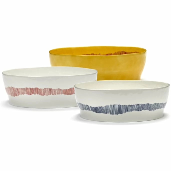 Mit einem Feuerwerk von Farben, Gemüse-Prints und Good Vibes spiegelt die neue Kollektion Feast by Ottolenghi alle Eigenschaften, die ihren Schöpfer, den britisch-israelischen Starkoch Yotam Ottolenghi auszeichnen, wider. Um sein Projekt zu verwirklichen, holte er sich Verstärkung bei dem italienischen Künstler Ivo Bisignano. Die extravagante, große Schüssel ist ein Teil dieser besonderen Kollektion und kann für Salate, Desserts sowie für andere leckere Köstlichkeiten verwendet werden. Die harmonische Farbgebung und die abstrakte Musterung sorgen dabei für das einzigartige unverschämt lässige Ottolenghi-Feeling. Feast by Ottolenghi ist das Ergebnis einer kameradschaftlichen Zusammenarbeit rund um den Wunsch, liebevoll zubereitete Speisen an einem schön gedeckten Tisch mit anderen zu teilen. Die hochwertige Schale ist aus lebensmittelechtem Steingut gefertigt und zudem mikrowellen- sowie spülmaschinenfest. Wir bieten Ihnen weiteres Geschirr aus der Feast by Ottolenghi Serie in unserem AMBIENDO Shop an. Überzeugen Sie sich selbst von der modernen Salatschüssel Feast by Ottolenghi von Serax!