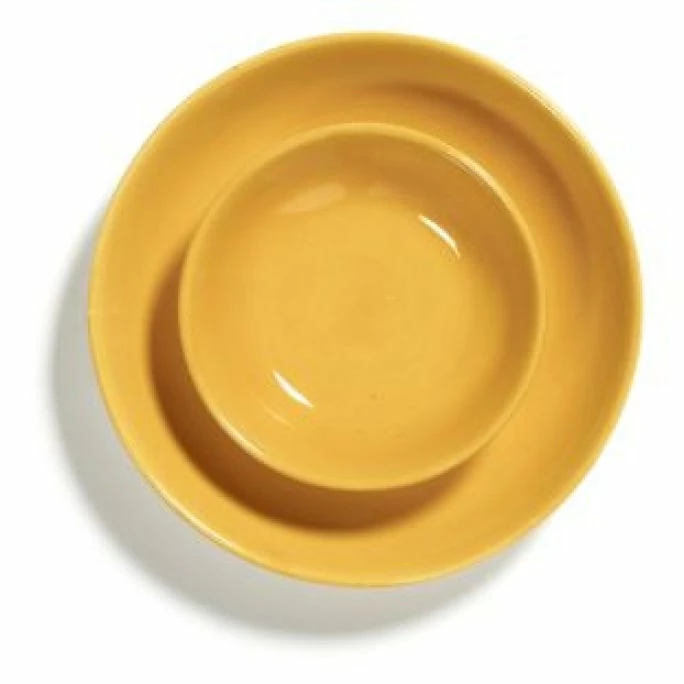 Mit einem Feuerwerk von Farben, Gemüse-Prints und Good Vibes spiegelt die neue Kollektion Feast by Ottolenghi alle Eigenschaften, die ihren Schöpfer, den britisch-israelischen Starkoch Yotam Ottolenghi auszeichnen, wider. Um sein Projekt zu verwirklichen, holte er sich Verstärkung bei dem italienischen Künstler Ivo Bisignano. Das extravagante Schalen-Set ist ein Teil dieser besonderen Kollektion und kann für Desserts sowie kleine Snacks verwendet werden. Die harmonische Farbgebung sorgt dabei für das einzigartige unverschämt lässige Ottolenghi-Feeling. Feast by Ottolenghi ist das Ergebnis einer kameradschaftlichen Zusammenarbeit rund um den Wunsch, liebevoll zubereitete Speisen an einem schön gedeckten Tisch mit anderen zu teilen. Das hochwertige Set besteht aus acht Schalen, welche aus lebensmittelechtem Steingut gefertigt sind. Sie sind zudem mikrowellen- sowie spülmaschinenfest. Wir bieten Ihnen weiteres Geschirr aus der Feast by Ottolenghi Serie in unserem AMBIENDO Shop an. Überzeugen Sie sich selbst von dem modernen Schalen 8er Set Feast by Ottolenghi von Serax!