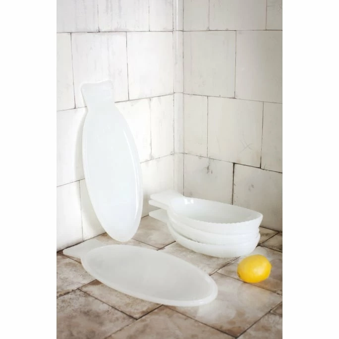 Die Kollektion Fish’n’Fish aus dem Hause Serax bietet stilvolle Schalen mit extravagantem Touch! Die Schalen sind in vielen verschiedenen Größen und Farbvarianten verfügbar, sodass für jede Speise die passende Schale erhältlich ist. Gemeinsam haben alle Produkte die Herstellung aus hochwertigem Glas. Einige der ovalen Schalen haben ein Fischflosse, die ein spannender Blickfang ist und auch als Griff fungieren kann. Durch den schlichten Look können Sie das Geschirr wunderbar mit anderen Produkten kombinieren. Die Glasschalen sind spülmaschinenfest und lassen sich somit leicht reinigen. Bestellen Sie die Schalen der Kollektion Fish’n’Fish von Serax und erfreuen Sie sich bei jeder Benutzung aufs Neue daran!
