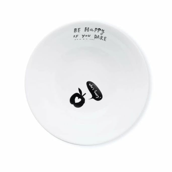 Ob Obst-, Servier- oder Snackschale, mit der tollen Happy Schüssel von VTwonen halten Sie die Zügel in der Hand! Mit einem Durchmesser von 25 cm wirkt die Schale durch die runde Form und die weiße Farbe einfach, aber stilvoll. Das Porzellan ist mit dem Text “Sei glücklich wenn du dich traust” und einer Sprechblase mit “Wer ist glücklich?” dekoriert, dazu ein kleiner Apfel mit einem Herzausschnitt. Die liebevoll dekorierte Schüssel ist aus hochwertigem Porzellan gefertigt und spülmaschinen- und mikrowellengeeignet. Zudem hat das Happy Geschirr die gleiche Form und elfenbeinweiße Farbe wie das uni VTwonen Geschirr, das Sie auch hier bei uns im Shop erwerben können. Bestellen Sie jetzt und genießen auch die kleinen Glücksmomente im Leben!